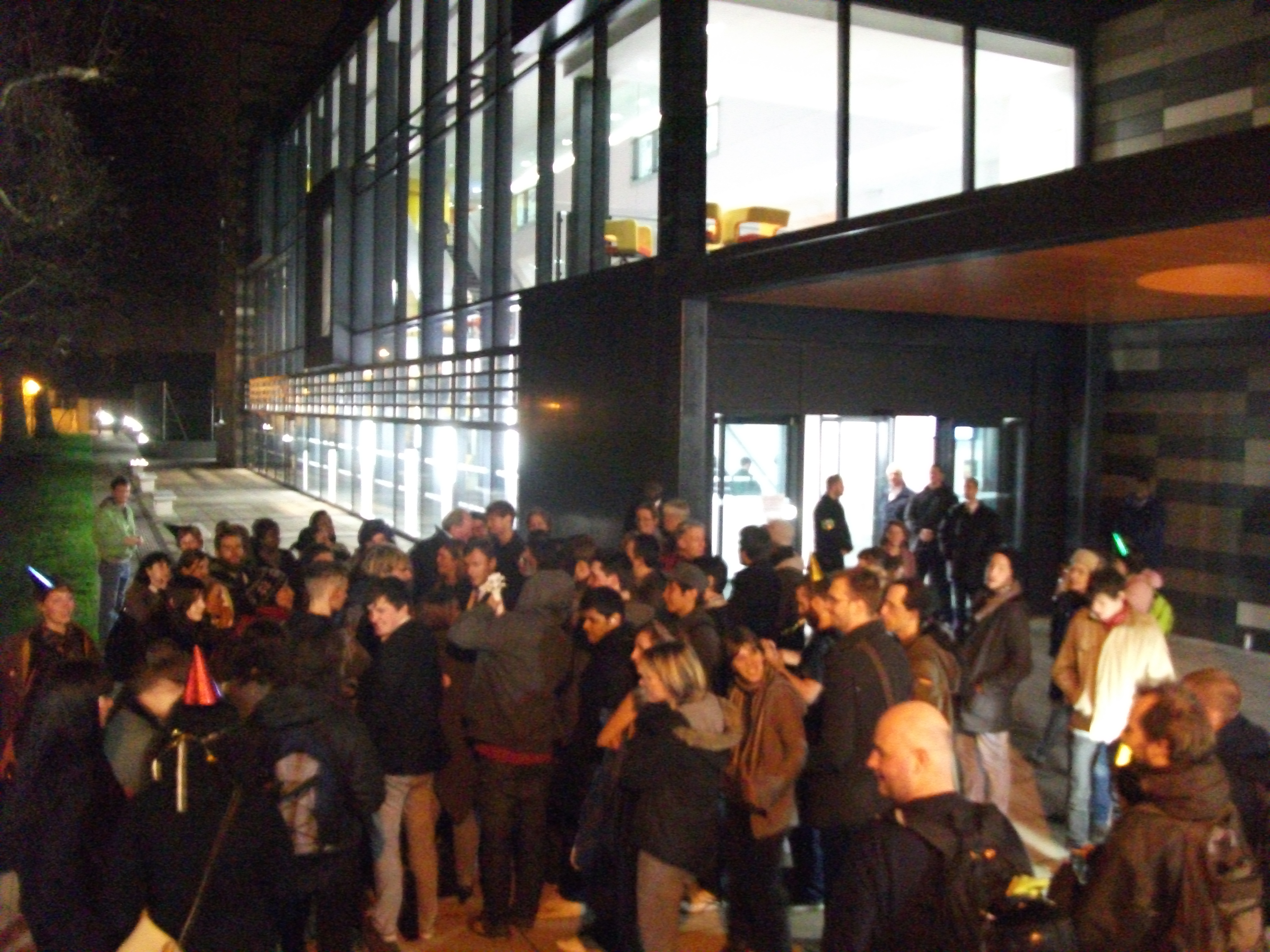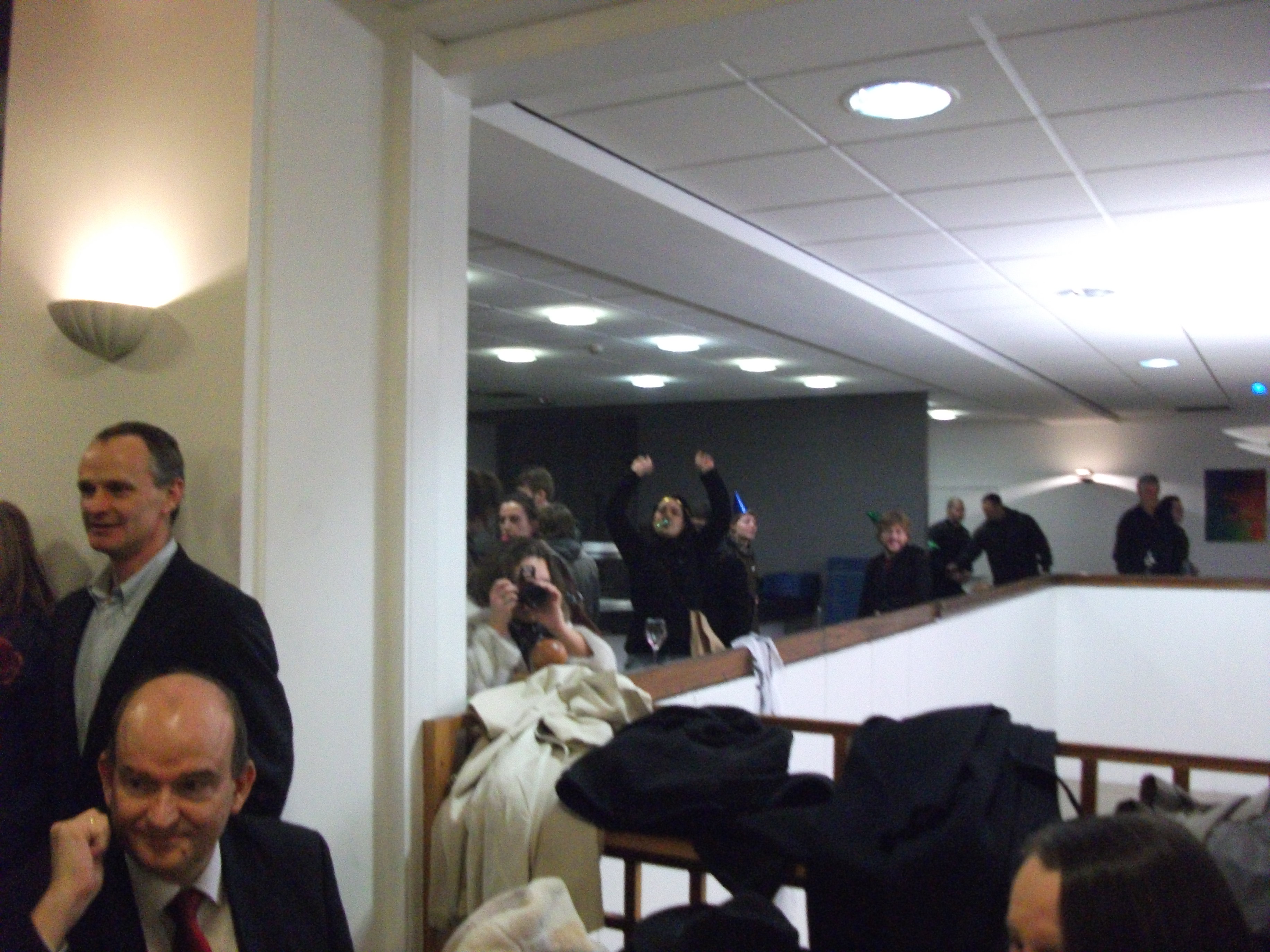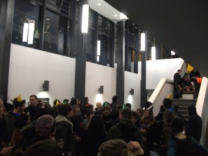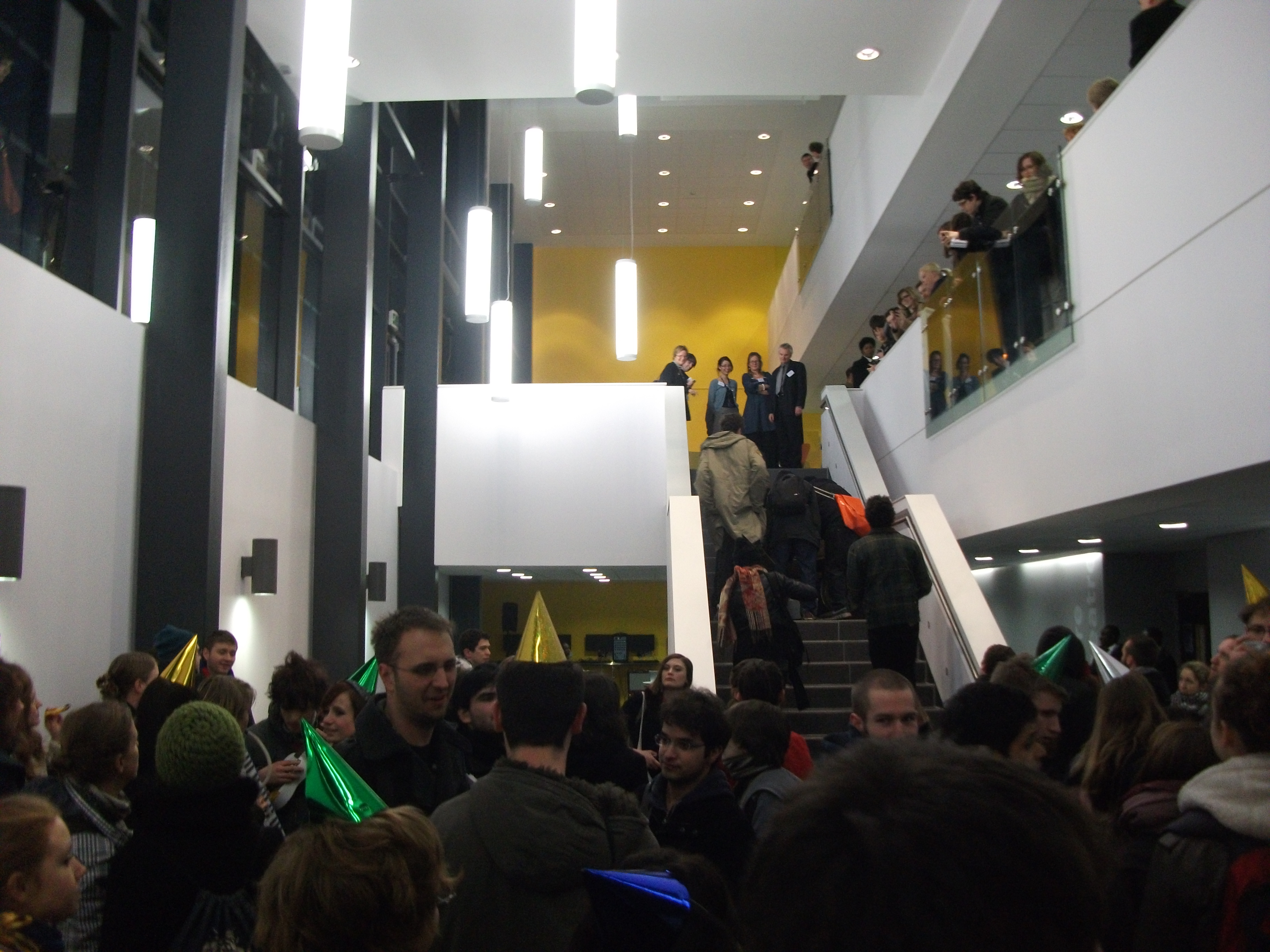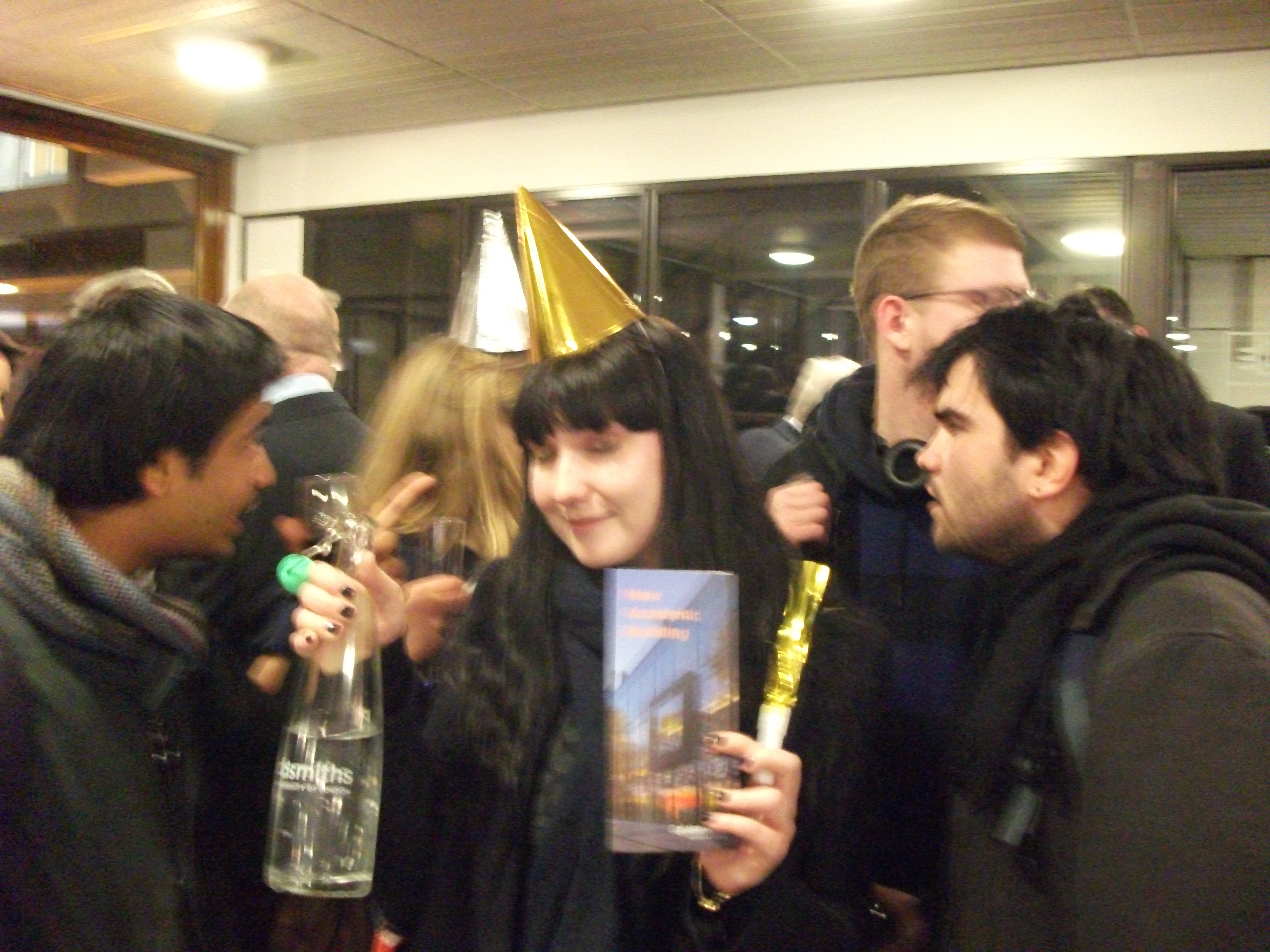 The New Academic Building has been open for quite some time, though Archie Norman had been invited to formally open it. After gathering outside with fake champagne, party horns, hats and streamers, the Goldsmiths crew erupted into the building.