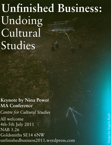 Lastly, plug for this event I’m co-organising with Morten, Becky, Sibi, Sophie and other CCS people next Monday and Tuesday. I’ll be talking about cultural studies on the first day and car-parks on the second. It’s free and everyone is welcome, including your good self, who ever you are – see unfinishedbusiness2011.wordpress.com