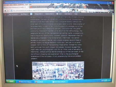 Ok, so here’s a version of a paper I presented at the Unfinished Business: Undoing Cultural Studies conf a couple of weeks ago. It’s called “Notes from Underground Car-parks: Critique from the Non-Place”. I’m hoping to rework it, as some of the ideas here are still a little problematic. Ballard meets Dostoevsky on the Loughborough or Heygate Estate possibly.