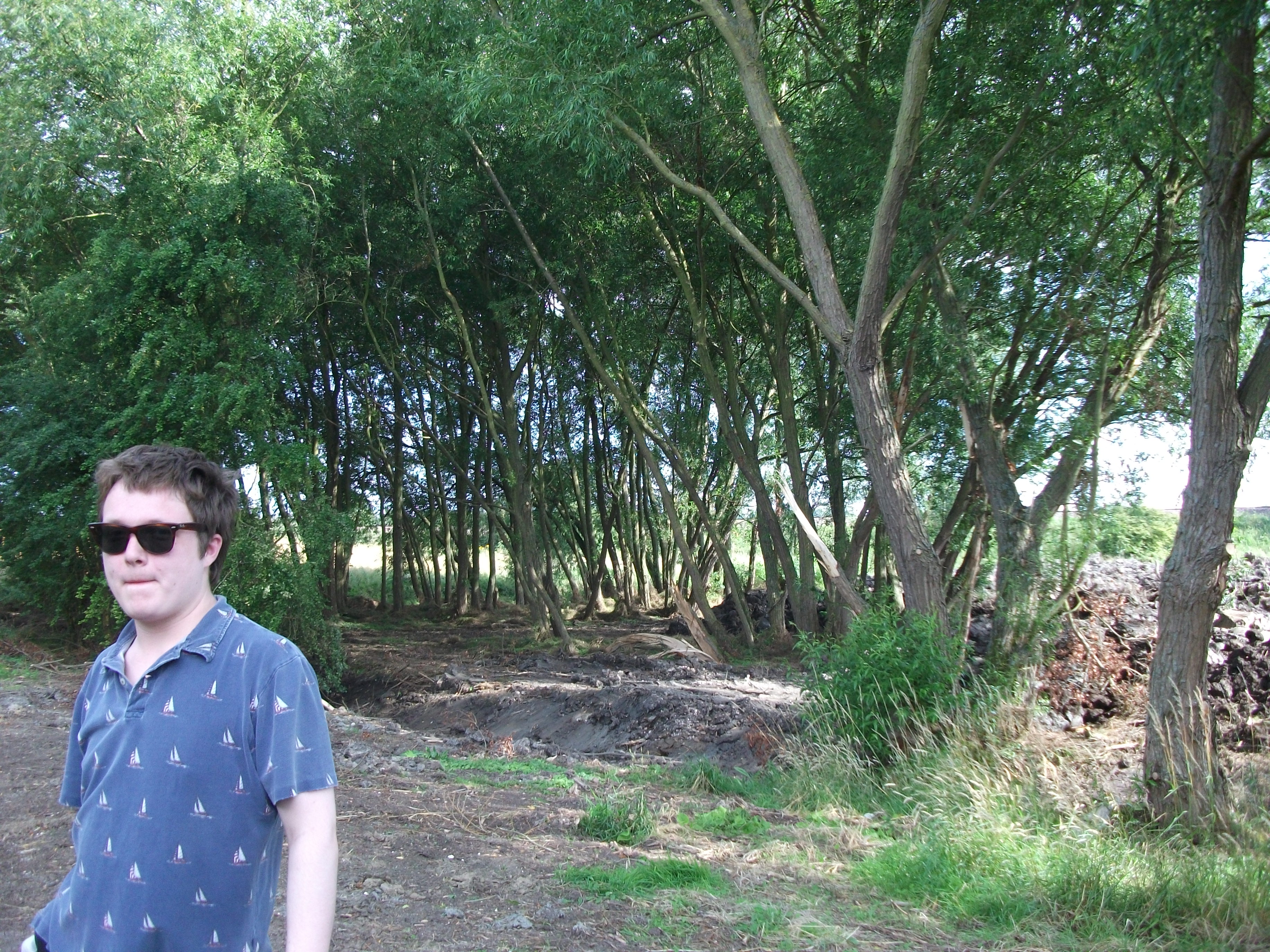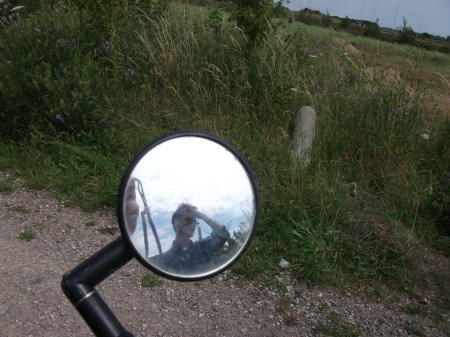 What do I mean? Well after these idyllic images we got completely lost again, shortly after reaching the pleasant town of Faversham. Somehow we ended up parallel to the railway line, in an endless expanse of corn. At first a rough path seemed to lead in our direction towards Canterbury, but halfway through the corn began to get very high, up to one’s brow in fact, and the bicycles barely managed to ride through the thick, sharp and knotty crops. The entire field seemed abandoned, but we were lost. We cycled in this awful labyrinth (for which I was too tired to take photos) for nearly an hour perhaps, effectively doing laps of this place, before stumbling on a bizarre black swamp grotto – slag heap in the middle of nowhere, which my brother’s posing in front of below. We eventually had to give in and retrace our journey. Moving around in circles again, but on our own terms.