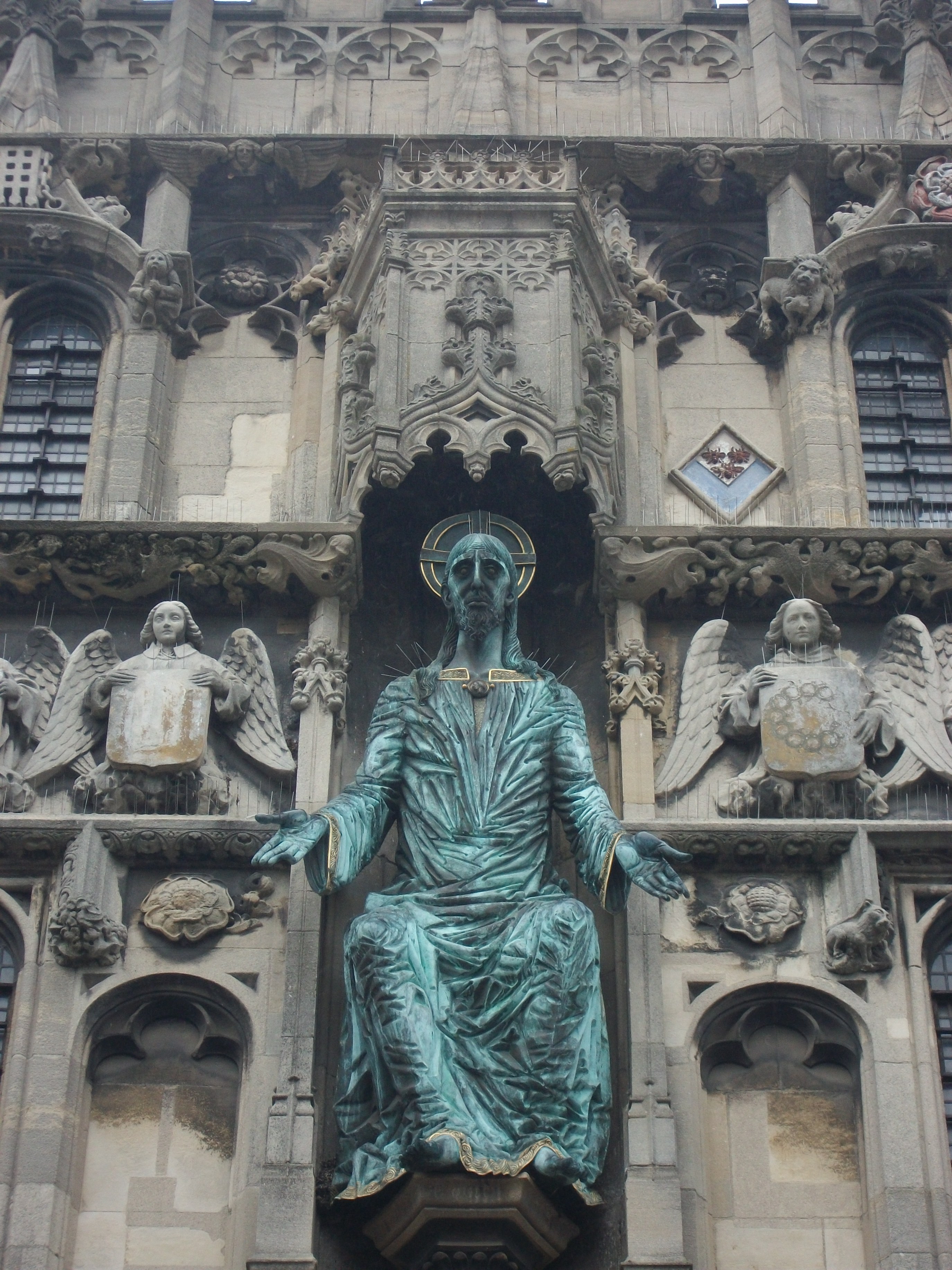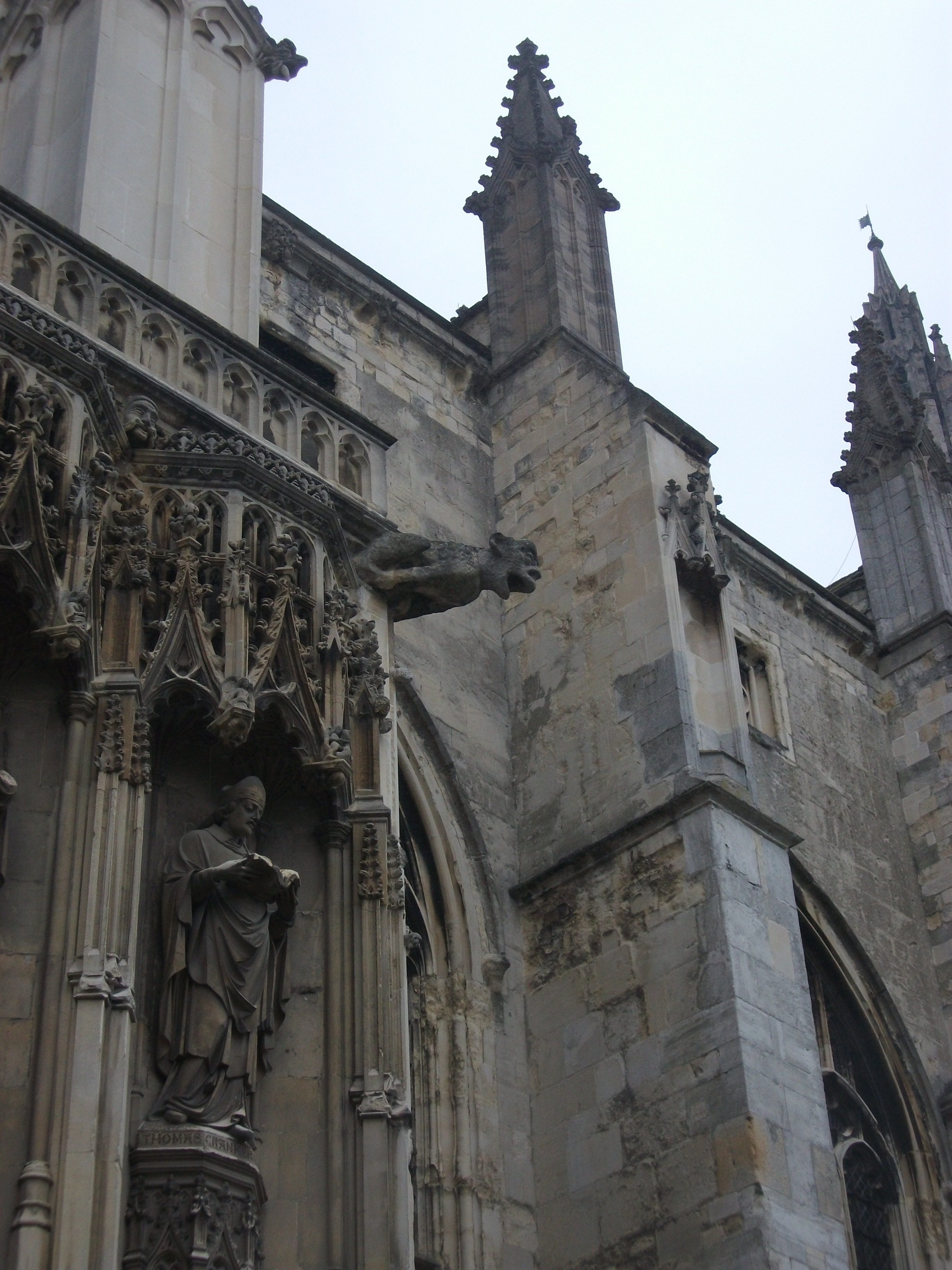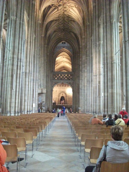 Canterbury Cathedral isn’t a place where one might come to love or worship a God, but ultimately to prostrate oneself in fear before it. The statue of Christ above is the focus of a huge gate that separates the Cathedral from the rest of the city. The face and figure are even more menacing and vile when standing before it, though the babble of international students loosens some of this humming fear.