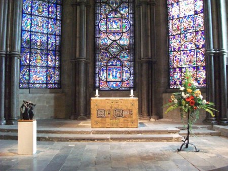 But it’s an appropriate fear – the idea of loving a God, or a loving God, might’ve been an alien concept first to the pagan cultures, rooted in masculine/feminine archetypes, and later to the Christian Church-maintained feudalism of the Middle Ages, where every act and idea was based on an authority. The gargoyles that haunt the margins of the entrances remind us that Canterbury Cathedral retains this fear. Its private chapels make references throughout to diabolic monsters, etched into the pillars of St Gabriels chapel and elsewhere in its oldest part, the Norman crypt. At another private chapel one sees, in the stain glass, an image of betrayal – Judas literally hiding under the table of the Last Supper, betrayal and destruction always within our personal spaces, inside us. Such a Cathedral is more a monument to fear and awe than love.