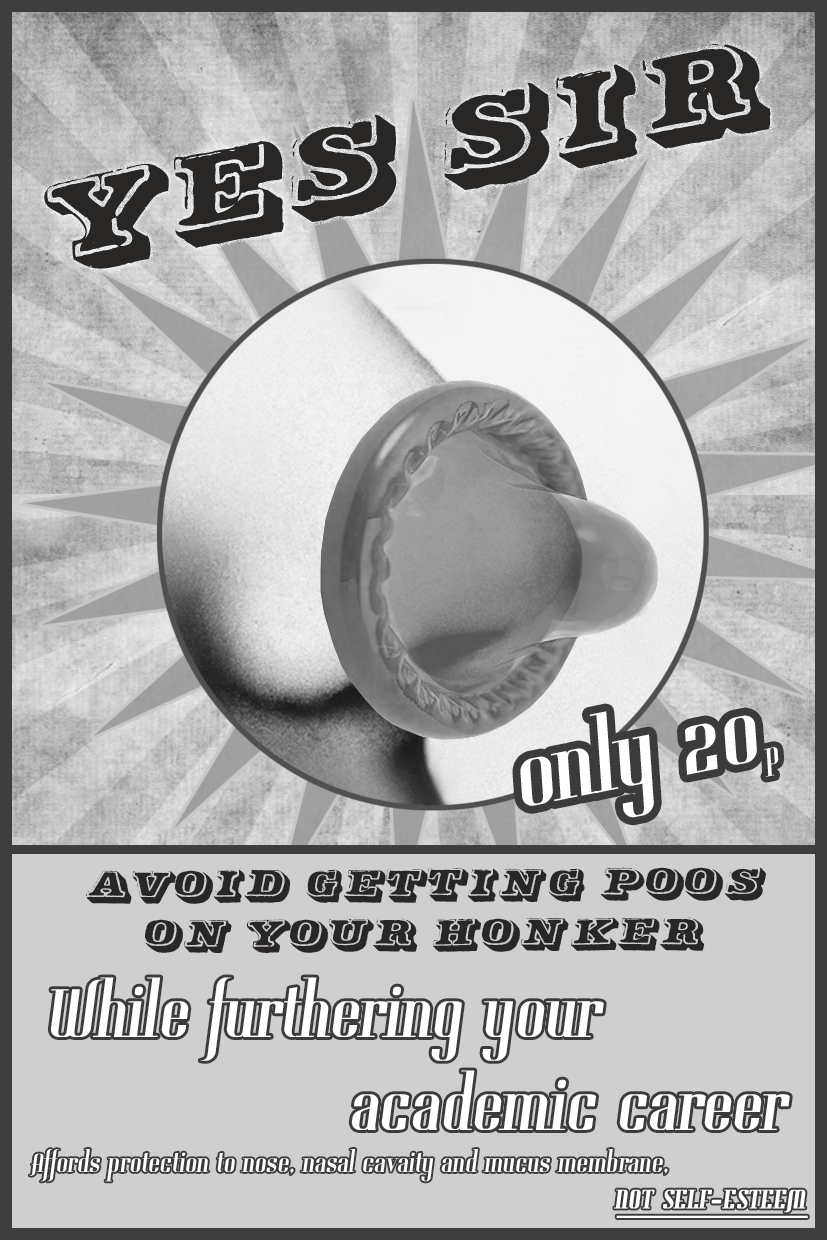 Students take part in the masturbation of cynical and disappointed teachers’ egos, university recruitment packs and the wider wank-story of being actually paid for labour if you’re a young worker. Keeping up the pornographic imagery, the sycophantic student whilst pleasuring these powers is in turn fucked from behind by the prevailing neoliberal economic system which has turned education into a qualifications-factory sustained by serious debt, figures that will involve up to 40 years of a student’s life to now repay. In the wider game, neoliberal economic ideas are fucking the public sector, NHS, general education system and everyday social life up the arse without lube (or anything else), indeed getting off on the austerity of its so fucking good “economic medicine” to an ailing physical economy (more lentil curries and wetherspoons £3 brekkies needed clearly). A piece of paper and a satisfying future are the carrot paraded over the student/worker’s head in this sorry Sadean scene, to which the reader can add more fruity and suspicious characters to taste.