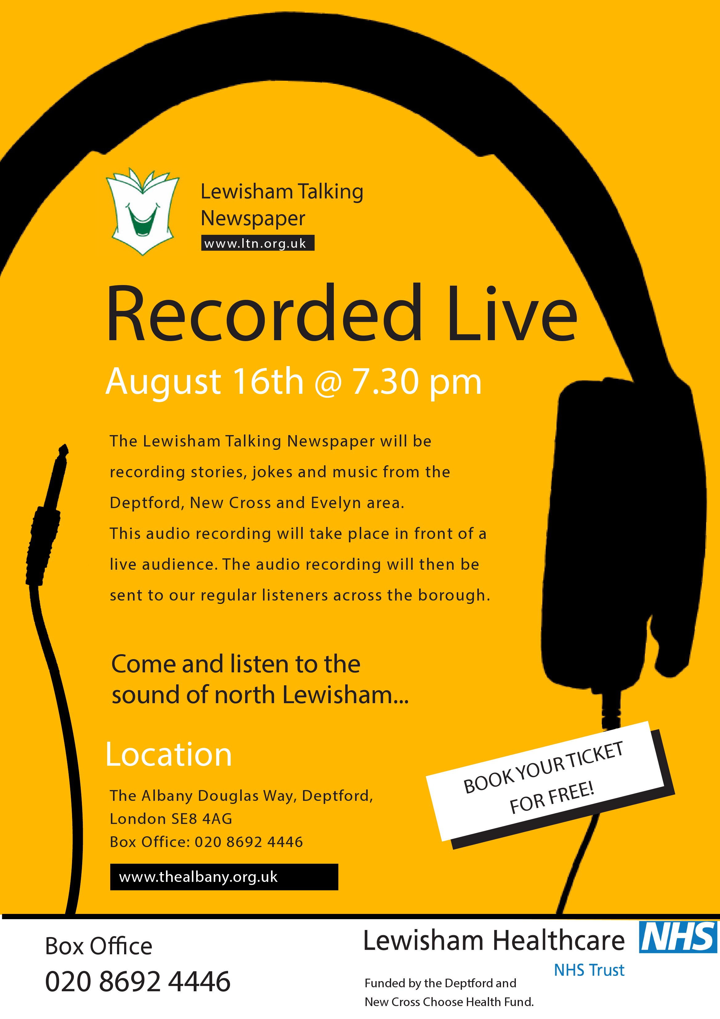 Stories and music about Deptford and the surrounding area will be brought together before a live audience, and recorded for visually-impaired people who the organisation helps, with the aim of raising awareness of Lewisham Talking Newspaper, a valuable community organisation running since 1977.
